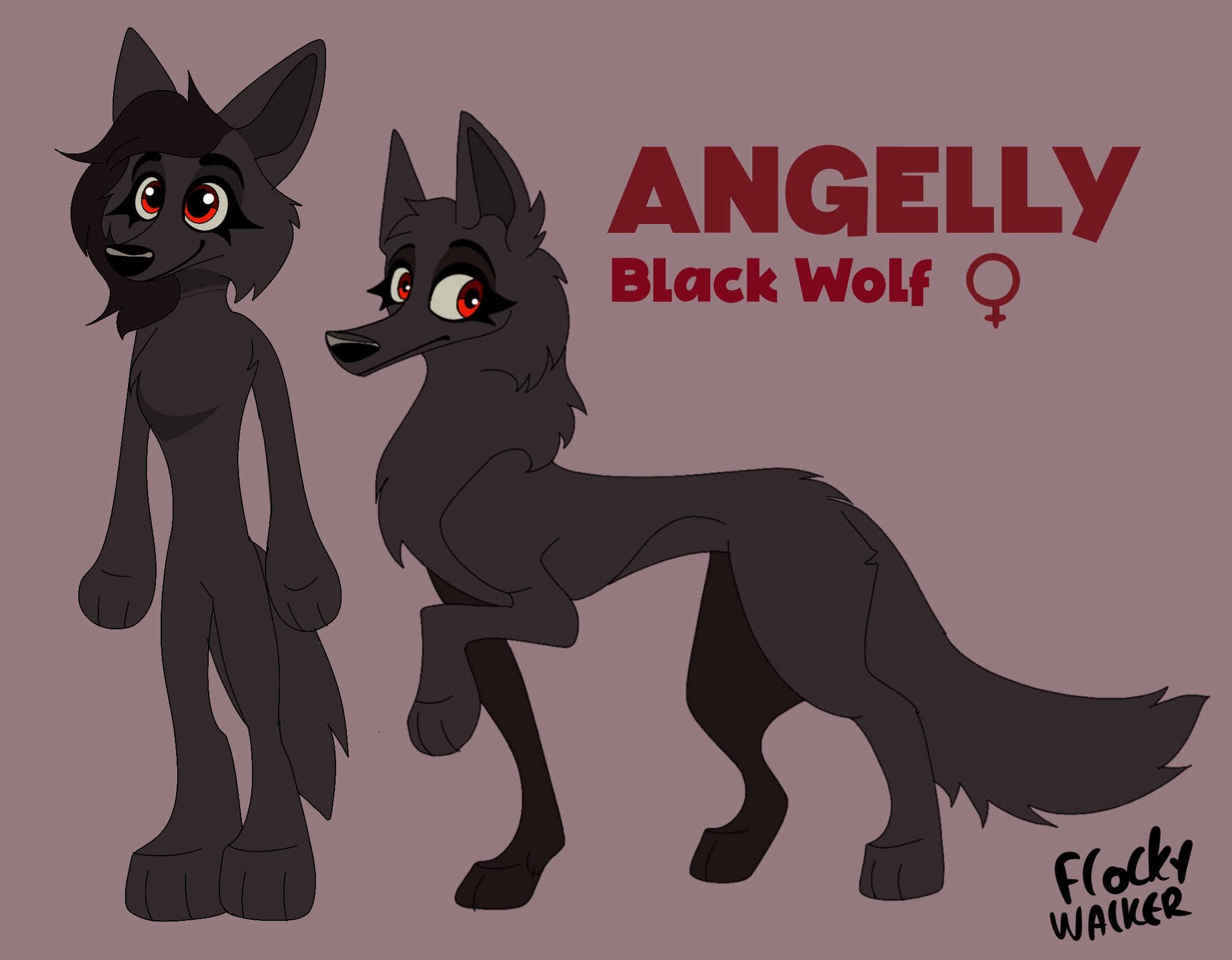 Angelly is a very small black wolf with red eyes. She has long black hair. She has smooth and beautiful fur. Angelly is very sensitive but keeps all her emotions in her head. She always looks sad and never smiles. On the other hand, she always tries to understand others and always has compassion. She has the character of a protective mother who defends her children. She really knows a lot about everything that happened unlike the other characters, she sees the world a bit philosophically. She is seen as a very wise character.