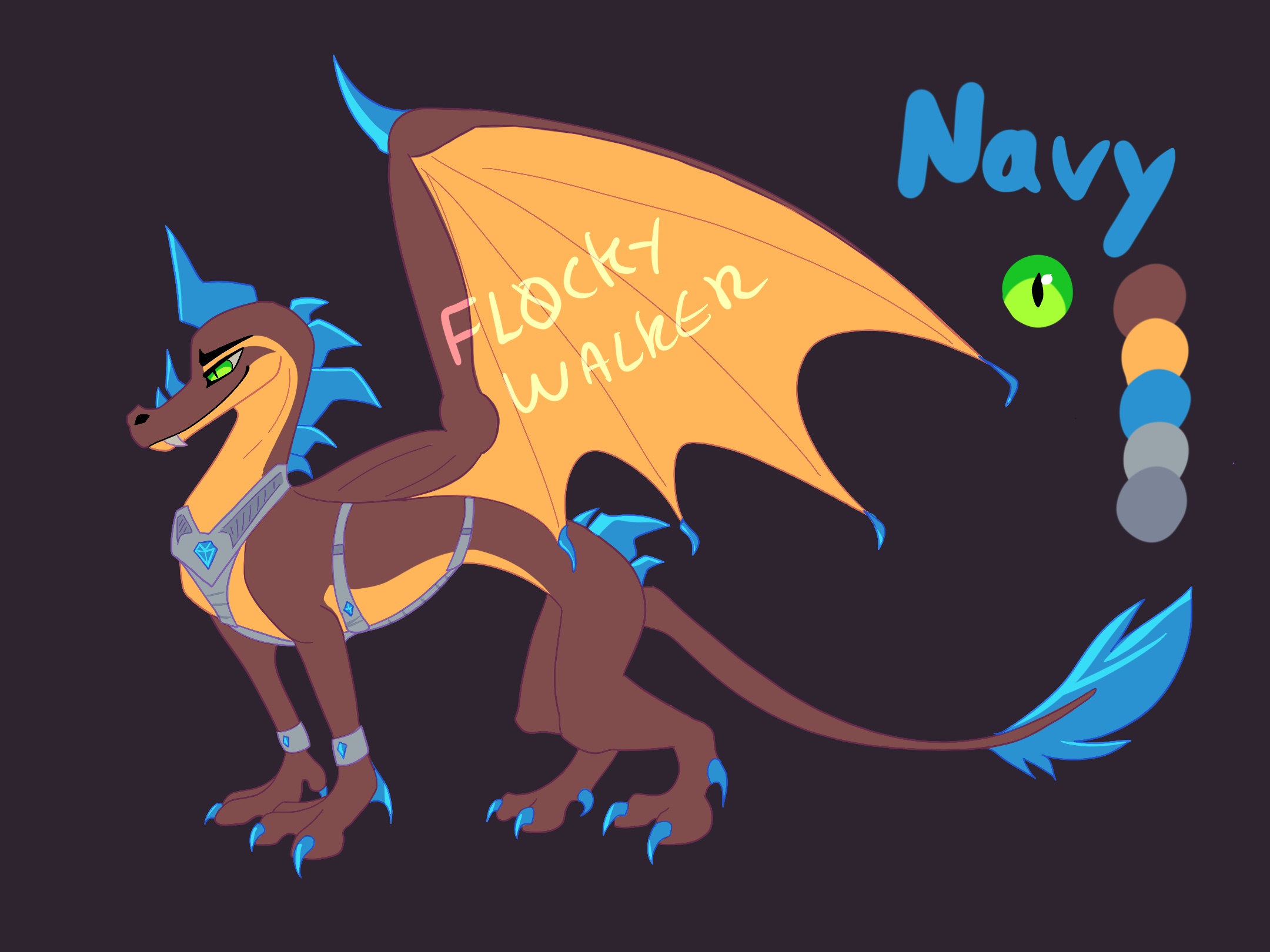 Navy is a mini dragon (he’s the same size as a pony), he is young and a bit shy. He is kind to other animals. He lives on the island of Dragons Territory on the Republic of Ashford. He can fly very high and very fast, he can also swim underwater in search of fish, he can also breathe and see underwater. Instead of ejecting fire, he projects ice water. He is best friends with Hazel, tge tiny cat.