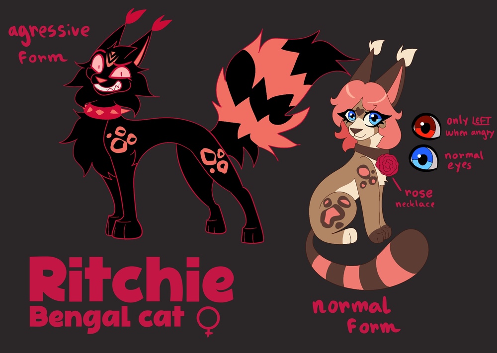 Ritchie is the main character. She’s a pink bengal cat and she loves macaroons. Ritchie is a determined cat. A little strict with others, Ritchie is also hardworking and in need of a challenge. She is rigorous, and sometimes Ritchie is a little too relentless. The goals she sets for herself, she will achieve it, even if it means challenging herself. Ritchie doesn’t like to talk too much and is very discreet. She doesn’t open up easily to others and this reserve has an aura of mystery. For her, it’s about protecting herself and not revealing her great sensitivity. Once in confidence, she can also turn out to be rather extroverted with those close to her. Calm, endowed with a good sense of humor and gifted for diplomacy Ritchie is a nice character. On the sentimental side, Ritchie appreciates stability and loyalty, because these are part of the values anchored in her. Sometimes, and even very often, she feels superior to others. She likes order and stability. She thinks first of herself, then of others.