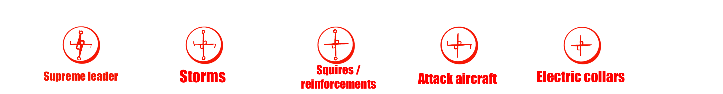 • Attack Aircraft : This includes all pilots and even some storms who are well trained to fly bombers, fighters or quads. If they are the Storms, they will keep their Storms symbol, but if they are pilots trained exclusively for it.